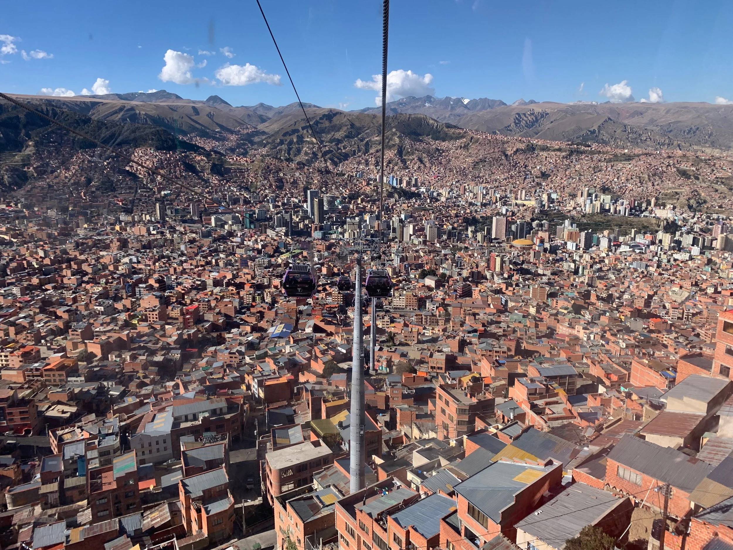 A view of La Paz from its subway in the sky - La Morada line on the Mi Teleferico